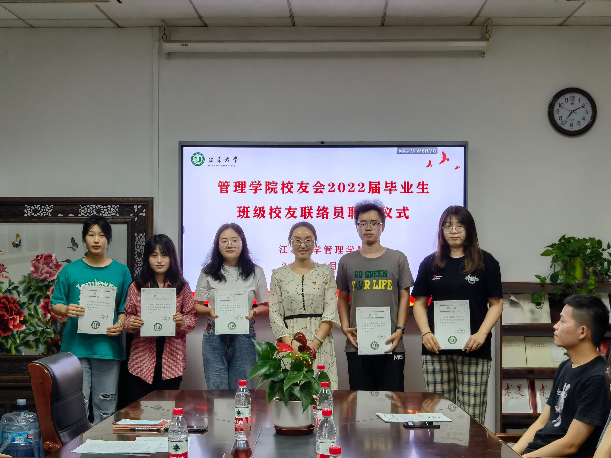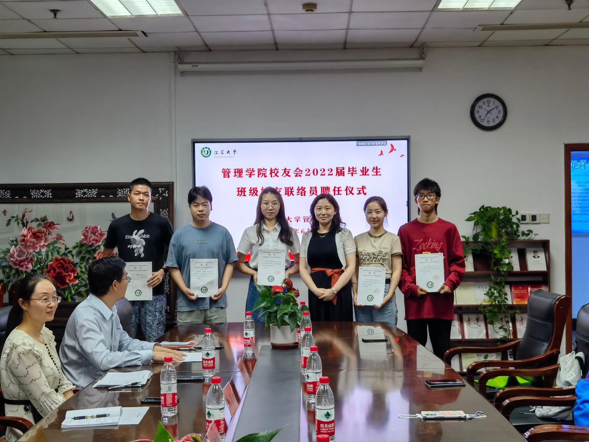 6月17日,8868在线(中国)唯一官方网站在三江楼1411会议室举行2022届毕业生班级校友联络员聘任仪式。8868在线(中国)唯一官方网站校友会会长、院党委书记王丽敏,8868在线(中国)唯一官方网站优秀校友、镇江市工信局党委委员、副局长朱明珠,8868在线(中国)唯一官方网站校友会副秘书长、院党委副书记、副院长欧阳国庆,校友周红光及2022届毕业生班级校友联络员参加仪式。仪式由2022届毕业生辅导员冯中超主持。