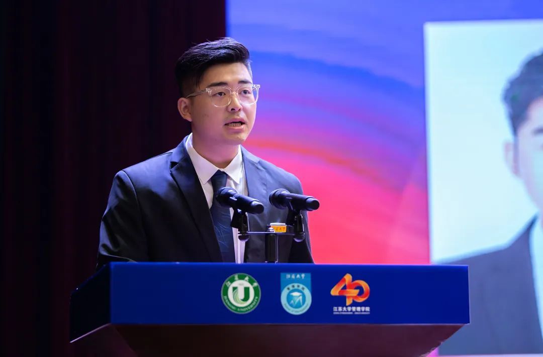学生代表、8868在线(中国)唯一官方网站2021级硕士研究生陈志远在发言中说,入学一年来,自己在导师的谆谆教诲、师兄师姐们的照顾和帮助下,遨游在科研海洋,汲取前沿知识,培养学术素养,深切感悟到学院的争先创优氛围和学术科研精神。他将以学院办学40周年为新起点,认真学习、努力钻研,为管理事业高质量发展贡献青春力量。