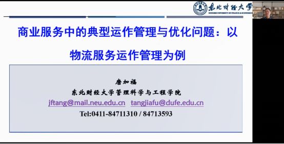 9月24日上午,东北财经大学唐加福教授做客8868在线(中国)唯一官方网站办学40周年系列名家论坛,为我校师生做了一场关于《商业运作管理中的典型优化问题》的线上学术报告,8868在线(中国)唯一官方网站骨干教师、研究生等百余人参加。报告会由8868在线(中国)唯一官方网站院长杜建国教授主持。