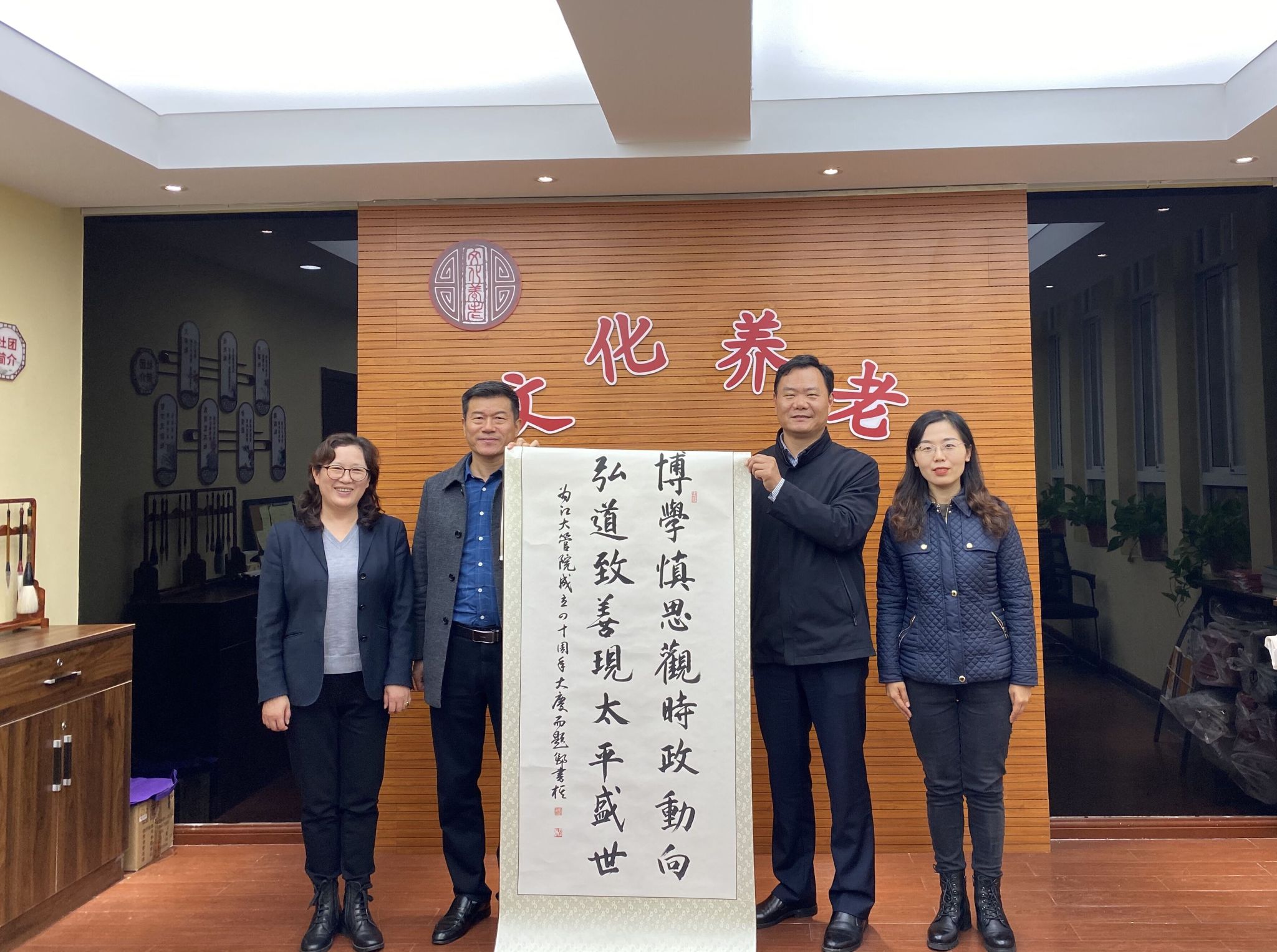 11月25日,由8868在线(中国)唯一官方网站主办的“喜迎二十大,永远跟党走,奋进新征程”院庆书画作品捐赠仪式在镇江市国资委行业老干部管理服务办公室2楼举行。8868在线(中国)唯一官方网站党委副书记欧阳国庆、团委书记周存君、辅导员杨旭以及镇江市国资委行业老干部管理服务办公室主任、党委书记钱忠勤、镇江市国资委行业老干部办“文化养老”社团党支部书记、社团团长、“银发生辉”志愿服务中队队长刘培勤参加了捐赠仪式。镇江市国资委行业老干部管理服务办公室主任、党委书记钱忠勤向我院捐赠了书画作品。